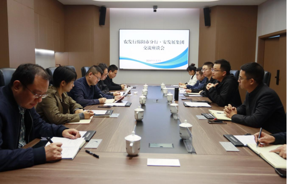 在随后召开的座谈会上,陈宁对农发行一行到集团考察交流表示欢迎,感谢农发行绵阳市分行多年来对集团发展全方位的支持,介绍了集团产业发展和各板块业务推进情况,并表示集团在国家储备林建设、安州区现代农业产业协同建设等重大战略实施,重点项目落地上需要农发行绵阳市分行一如既往地大力支持,期待双方在项目融资、产业发展等方面进一步加强合作,共同为地区经济社会高质量发展贡献力量。